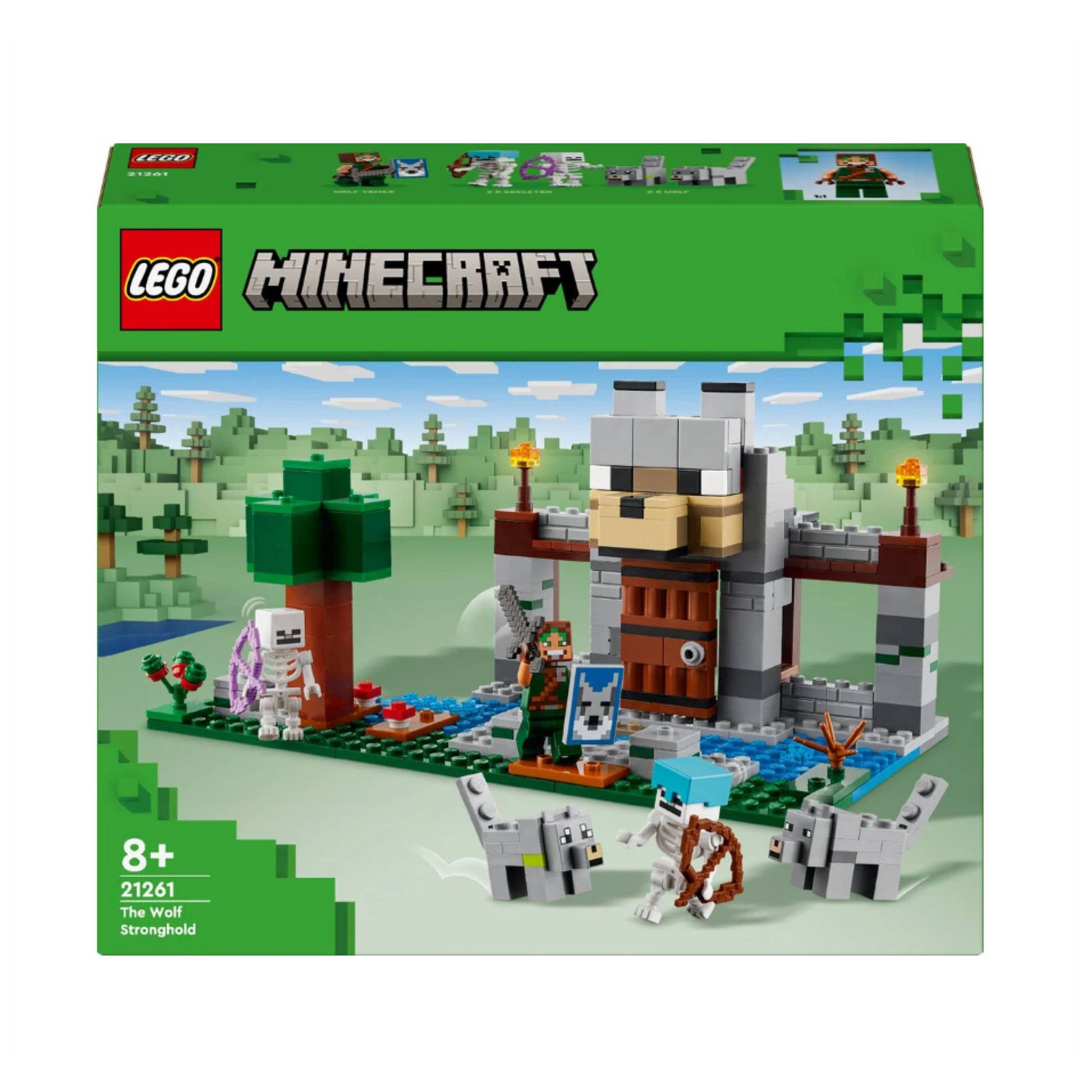 LEGO® Minecraft™ Vilkų tvirtovė (21261) – tai konstravimo rinkinys, skirtas vaikams nuo 8 metų. Rinkinį sudaro 312 detalių ir jis leidžia pastatyti modulinę taigos biomą įkvėptą bazę iš „Minecraft“ vaizdo žaidimo, kartu su personažais ir aplinkos elementais.