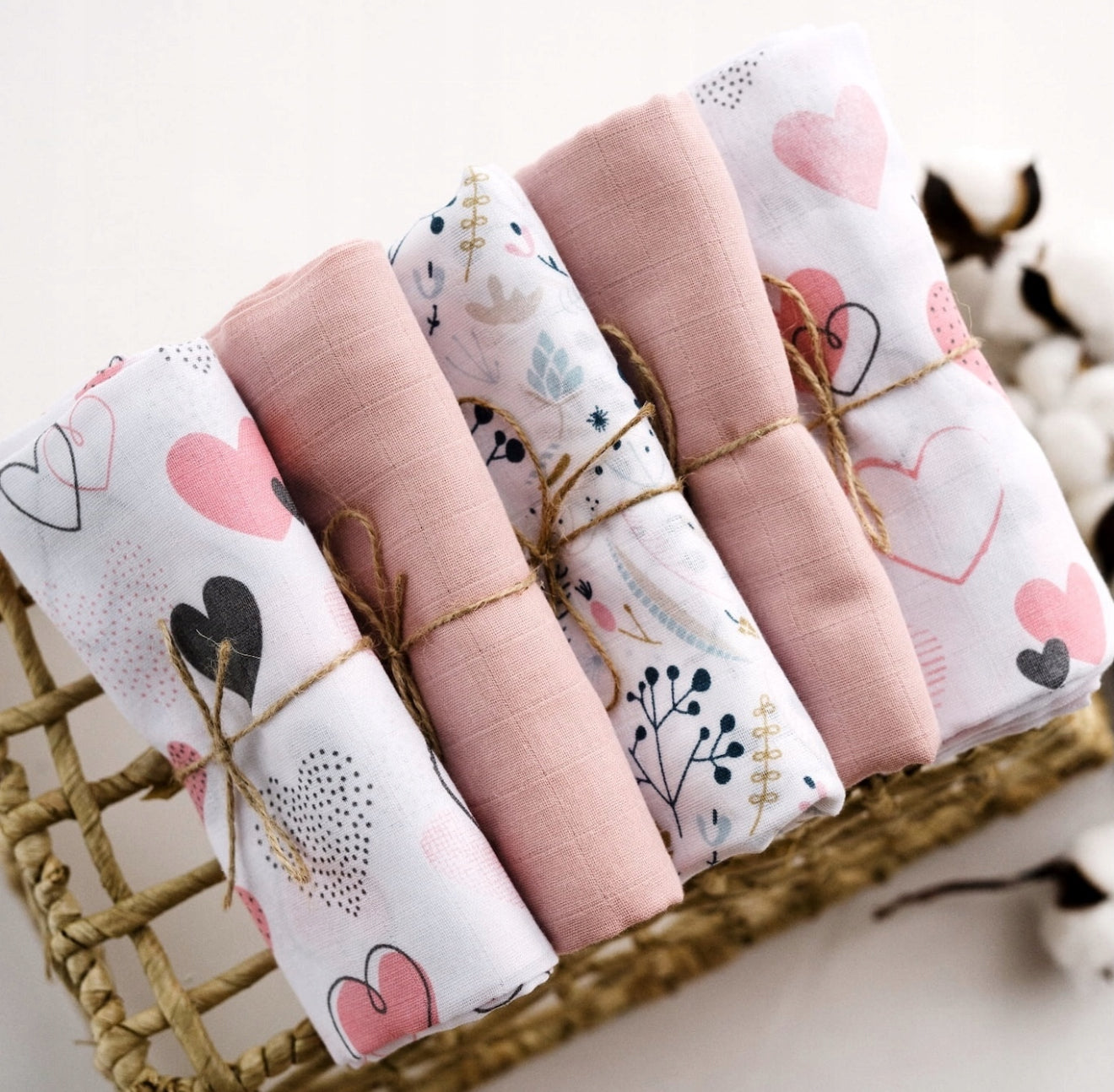 Švelnūs ir kvėpuojantys muslino merliukai – būtinas pasirinkimas kiekvienai kūdikio kraitelio daliai. Rinkinį sudaro 5 dailiai supakuoti audiniai, pasiūti iš 100% aukštos kokybės medvilnės, turinčios OEKO-TEX® sertifikatą.