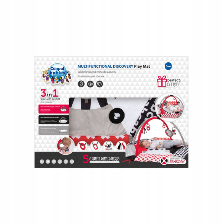 • Kilimėlis suderinamas su kitais Canpol Babies SENSORY TOYS kolekcijos žaisliukais.