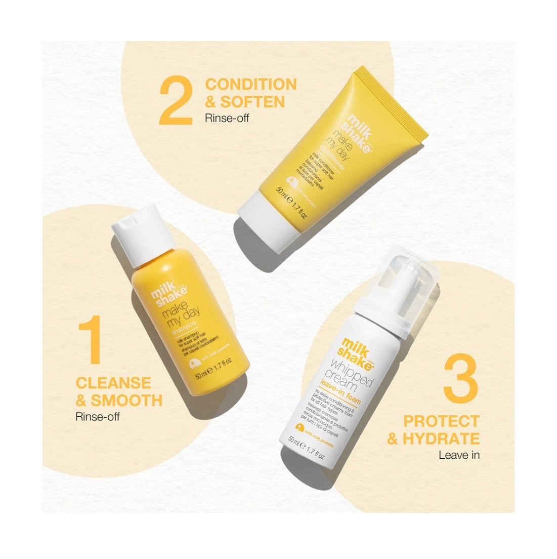 • Rinkinys „Make My Day“ sukurtas tam, kad suteiktų plaukams švelnumo, glotnumo ir lengvumo jau po pirmo naudojimo.