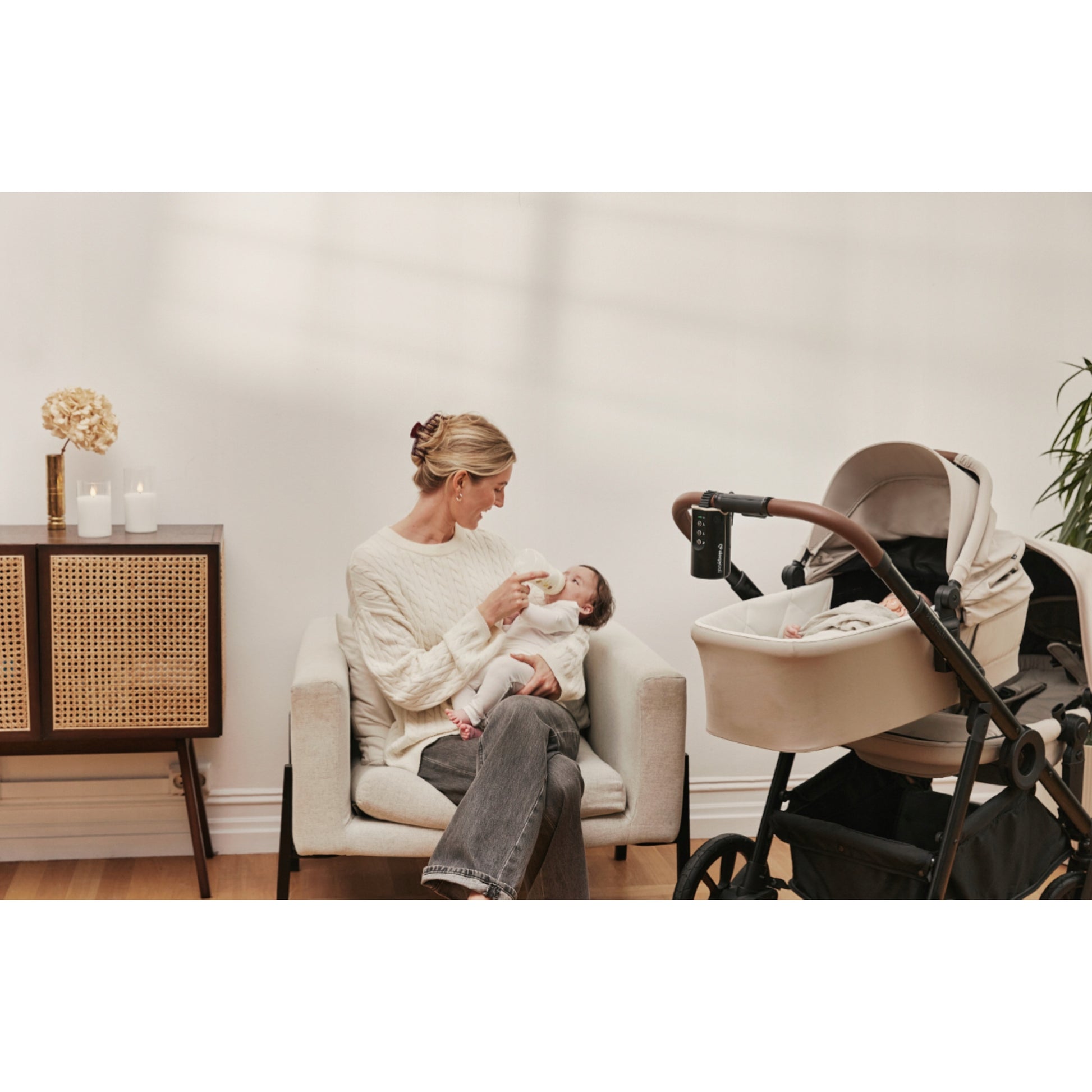 Universalus: Lengvai prisitaiko prie švelnaus supimo vežimėliuose, lovelėse*, supynėse* ir kt., todėl puikiai tinka bet kokiai aplinkai. *Adapteriai parduodami atskirai.
