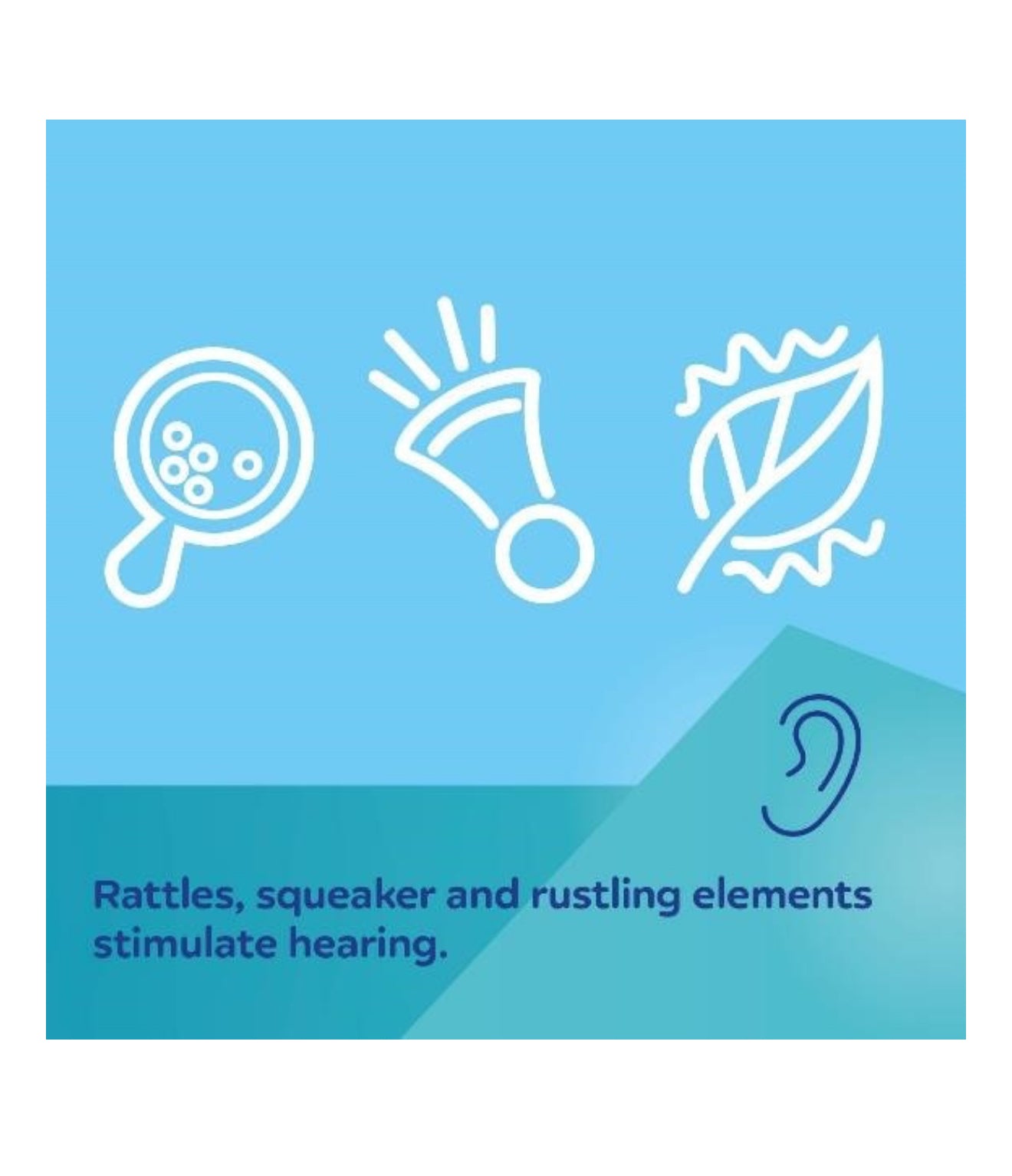 • Barškučiai, girgždėjimo ir šiugždėjimo elementai skatina klausos pojūtį.