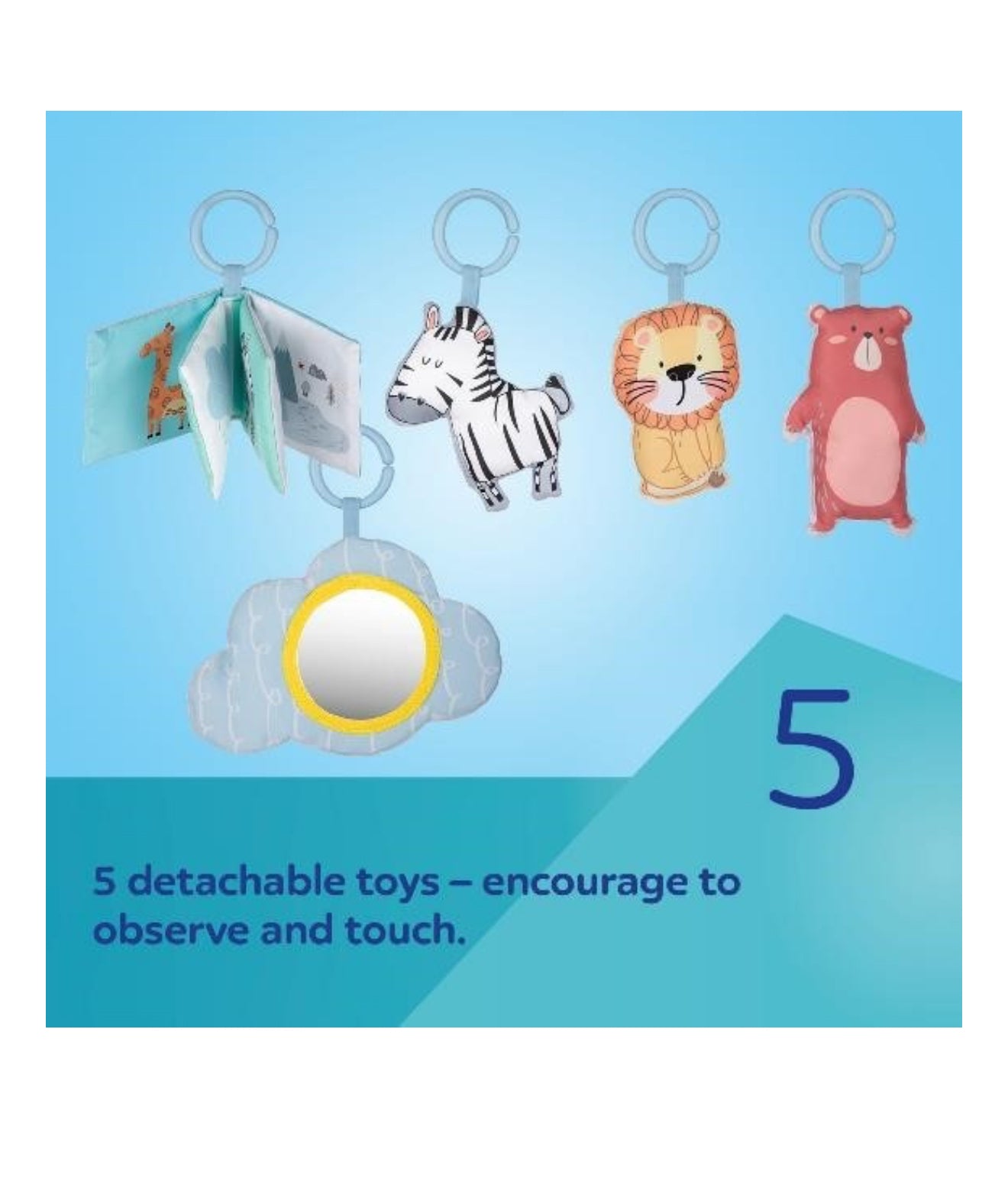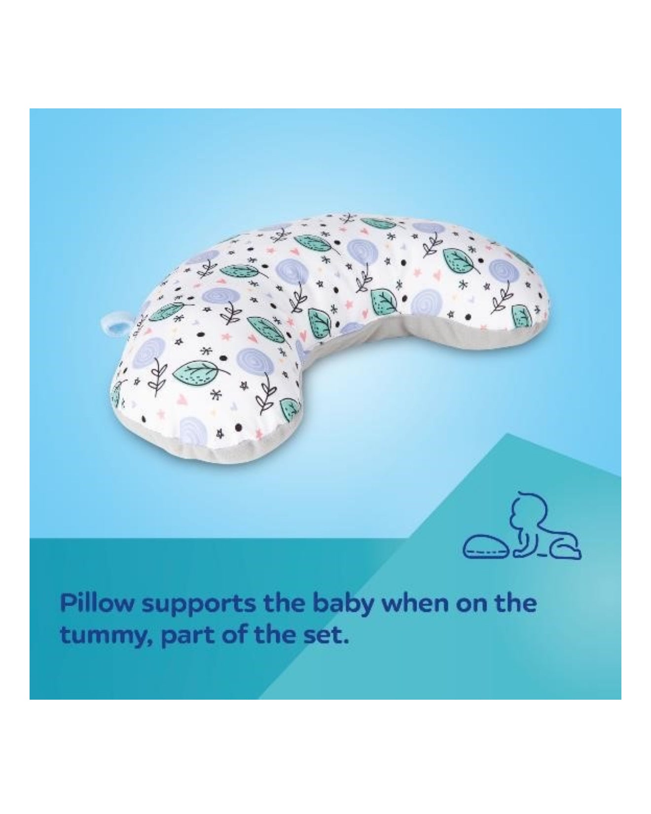 • Pagalvė, kuri palaiko vaiką gulint ant pilvuko yra komplekte.