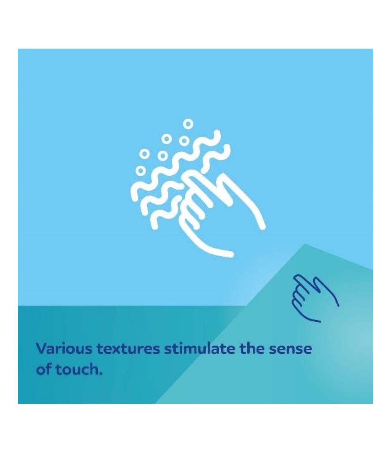 • Įvairios tekstūros skatina lytėjimo pojūtį.