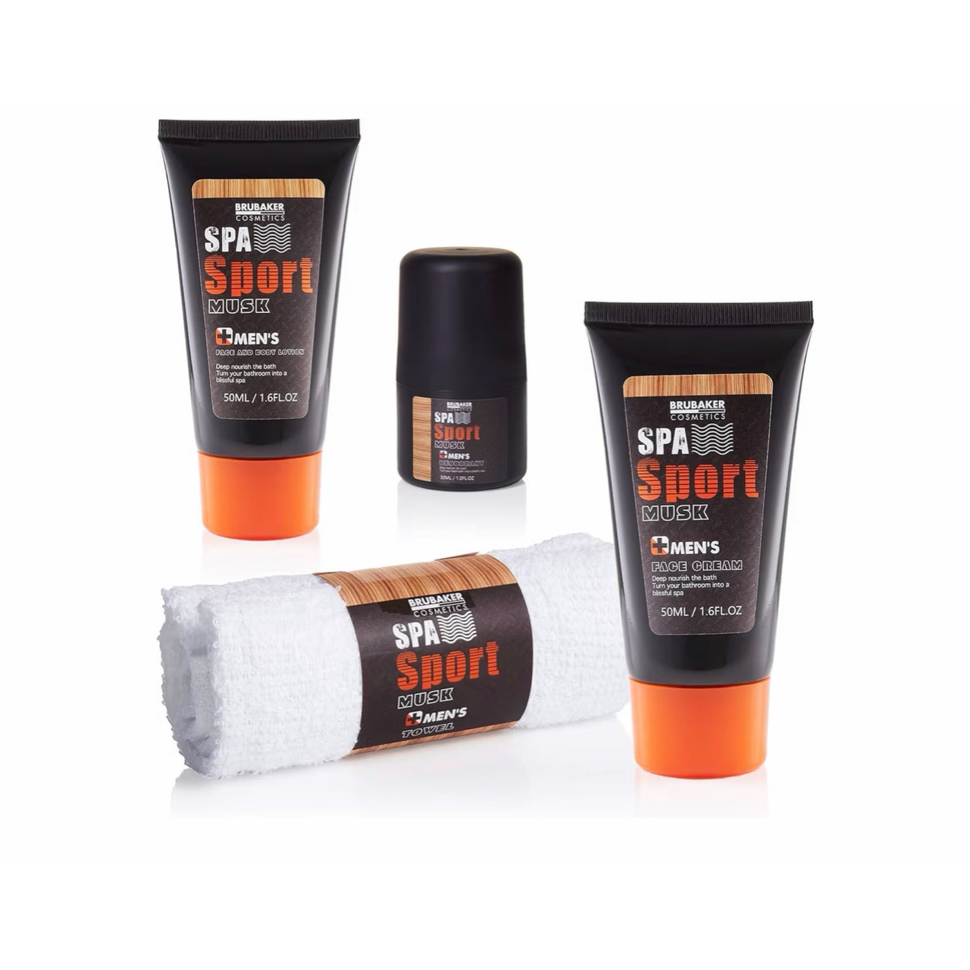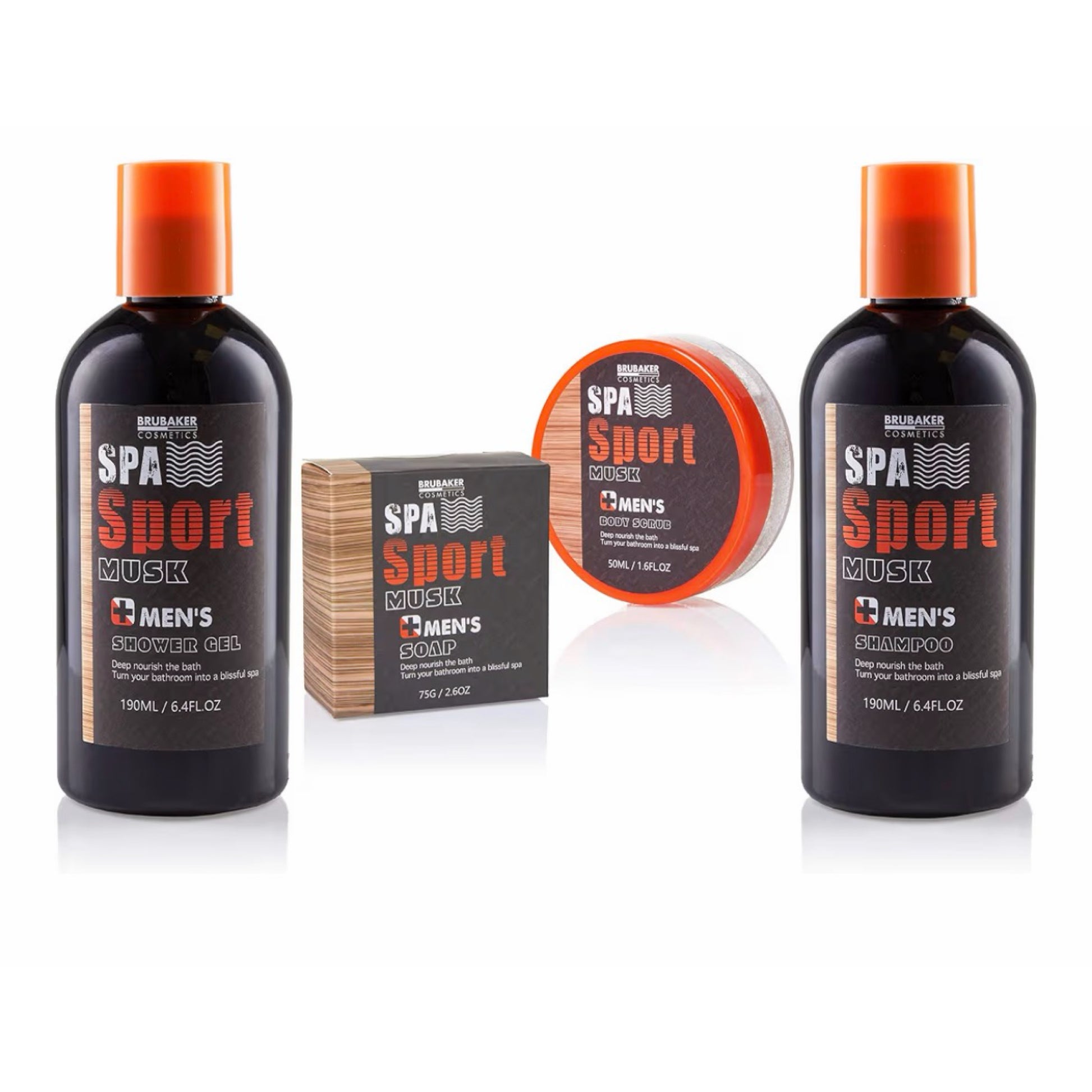 Energizuojantis ir praktiškas BRUBAKER „Spa Sport Musk“ rinkinys sukurtas aktyviems vyrams, kurie vertina gaivą, komfortą ir vyrišką aromatą. Puikiai tinka kasdienei priežiūrai po sporto, darbo ar kelionių – namuose ir kelyje.