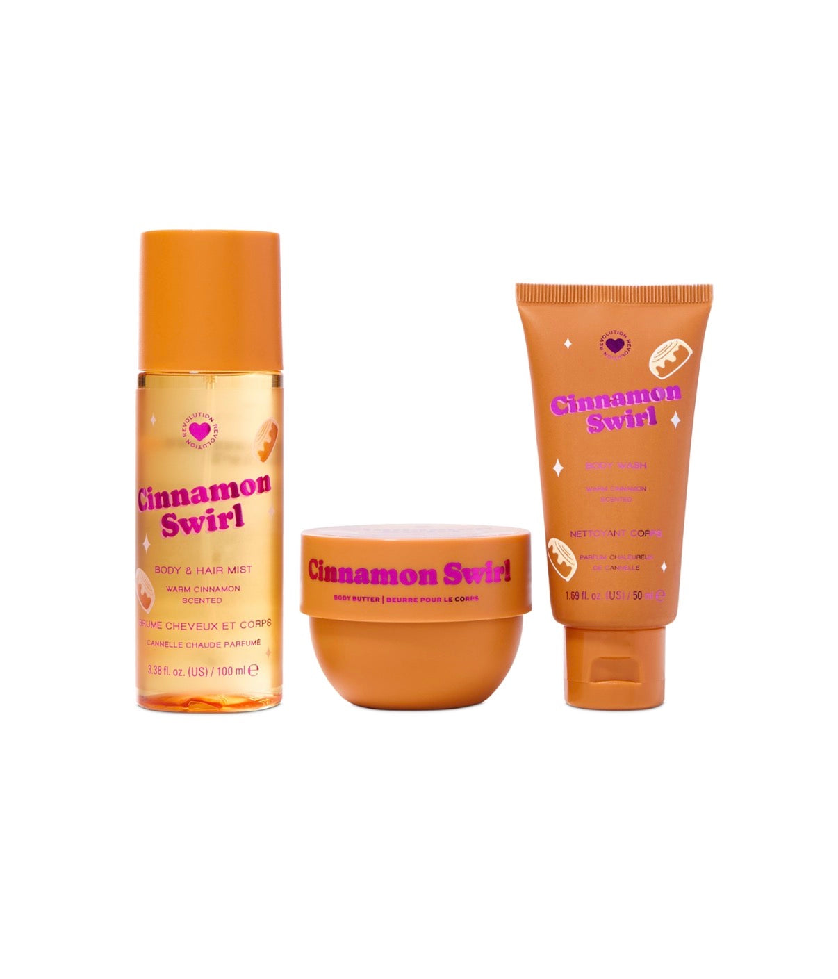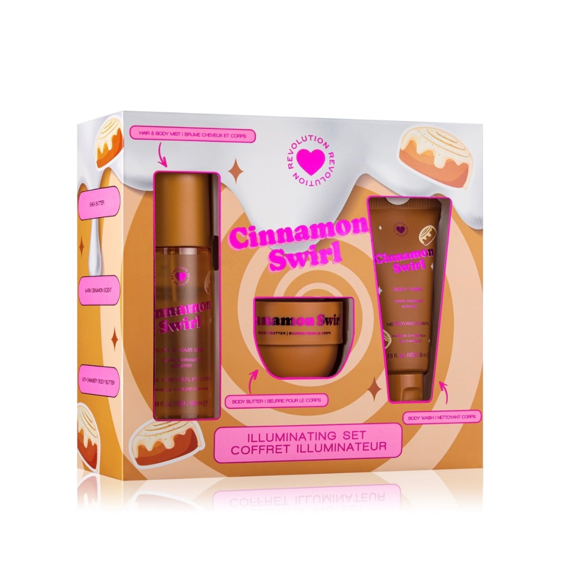 I Heart Revolution Cinnamon Swirl on piiratud väljaande jõulukomplekt maitsva kaneeli aroomiga. See komplekt jätab naha säravaks, pehmeks ja meeldiva, kauakestva lõhnaga.