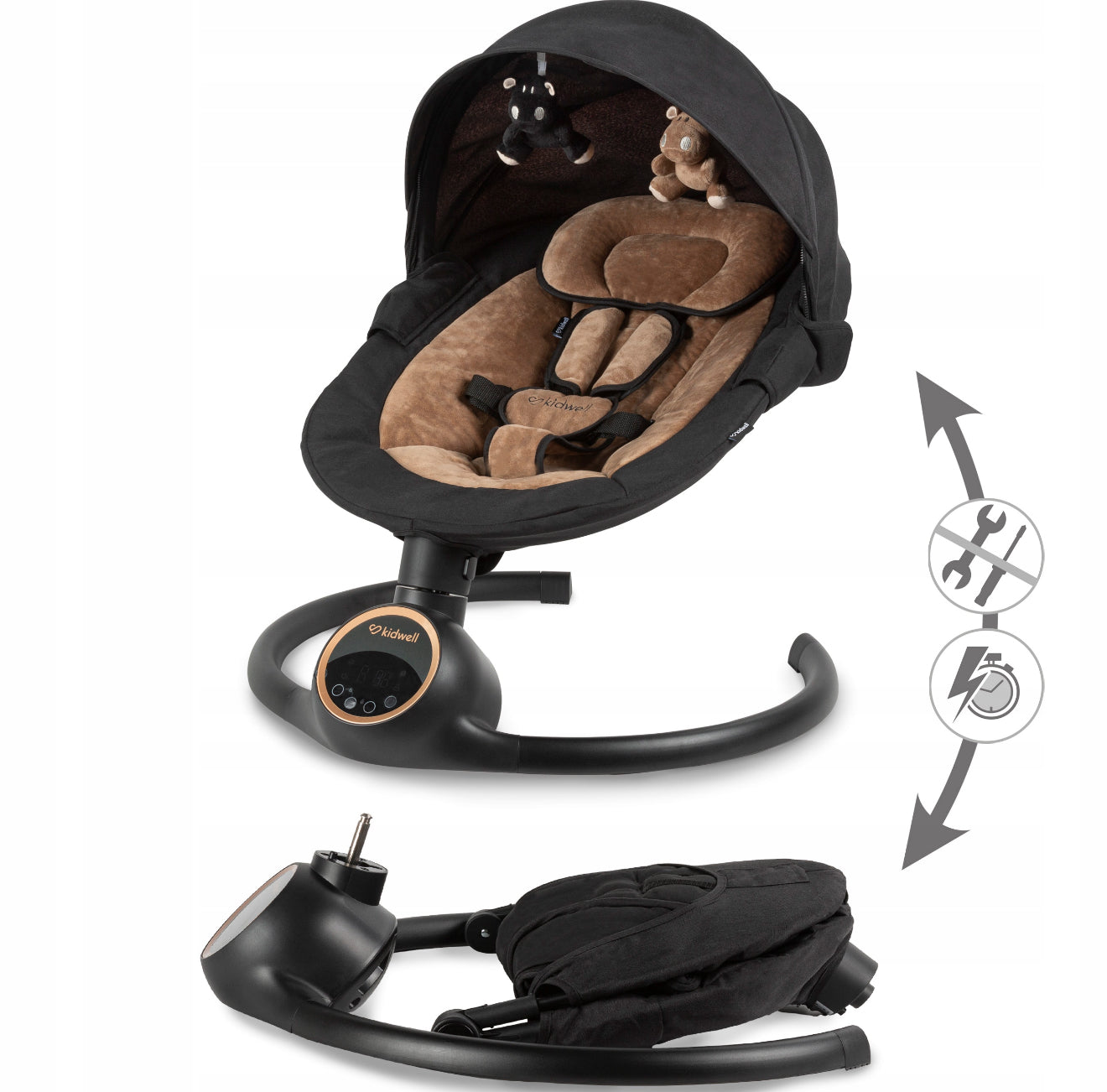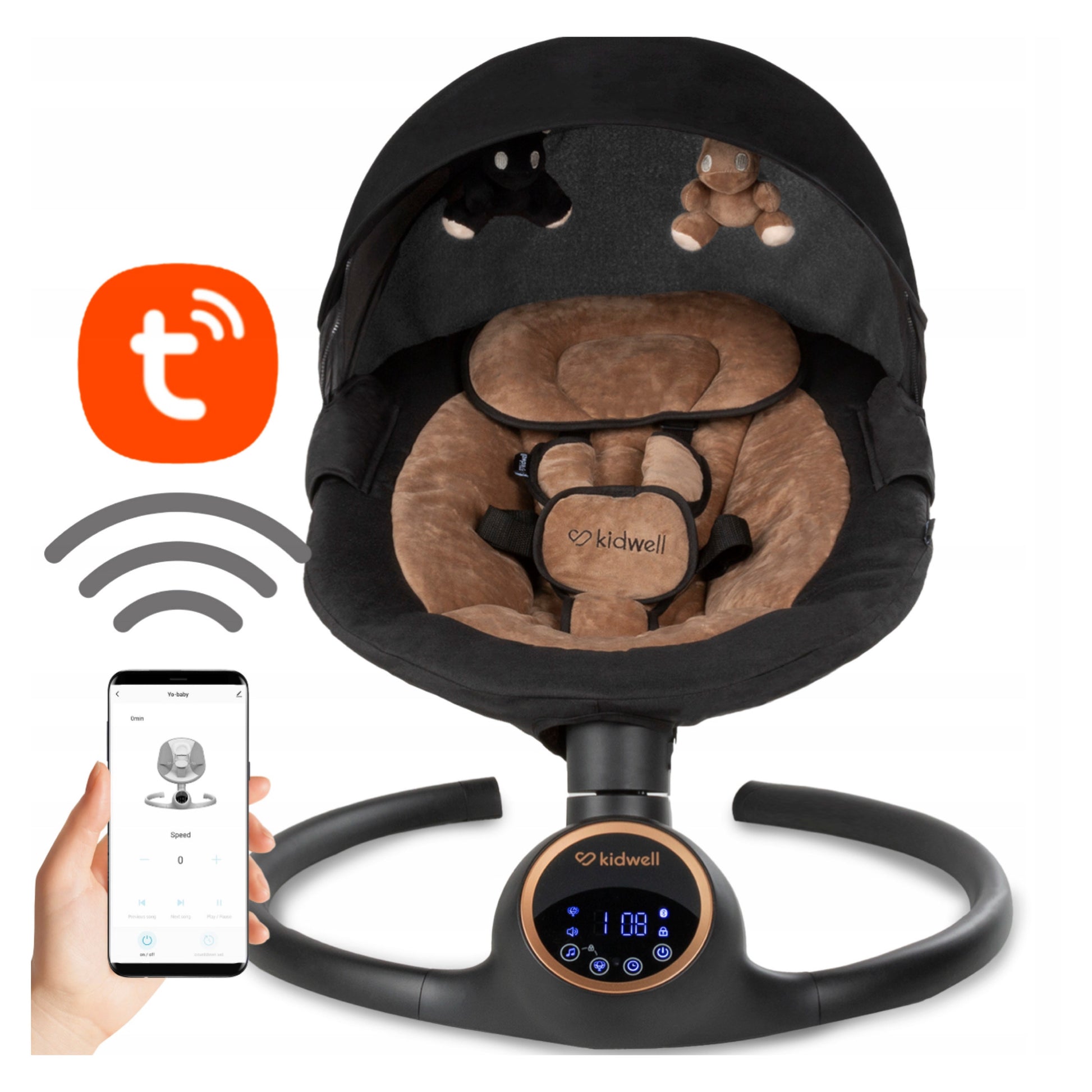 Kidwell REVE on moodne elektriline 2-ühes hüppekiik, mis on loodud nii beebi kui ka vanemate mugavuse tagamiseks. Seda saab juhtida käsitsi, puldiga või Tuya mobiilirakenduse kaudu. Kiigel on liikumisandur – kui laps liigub, hakkab seade automaatselt õrnalt kiikuma. Sisseehitatud taimer võimaldab teil määrata kiigumise kestuse (8, 15 või 30 minutit) ning salvestatud meloodiad ja muusika ühendamise võimalus Bluetoothi kaudu pakuvad veelgi rohkem rahu ja meelelahutust.