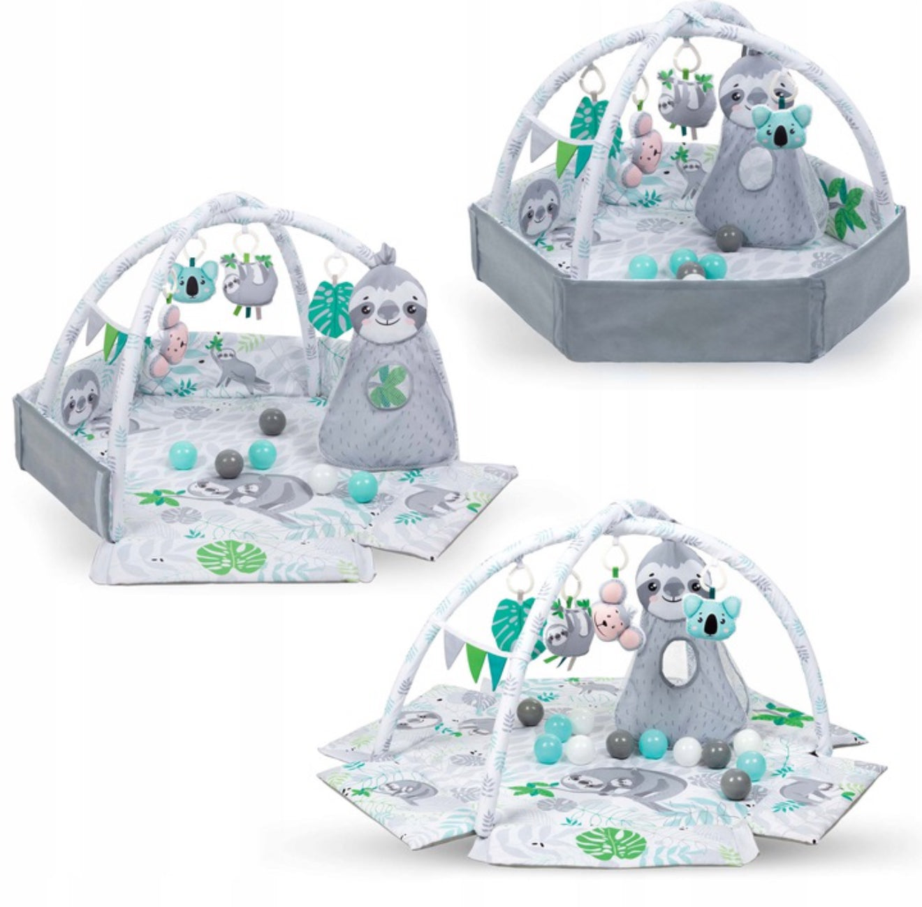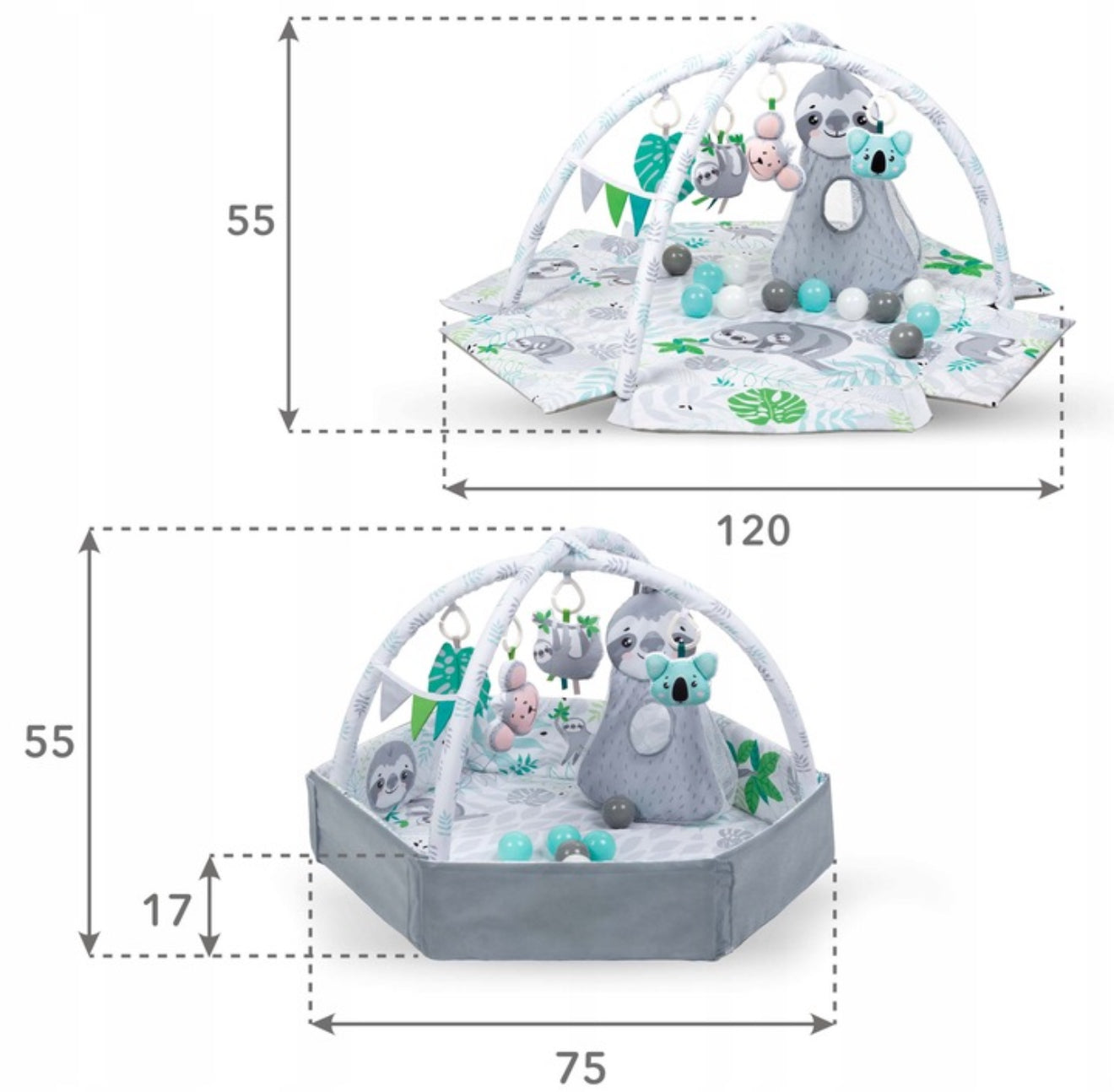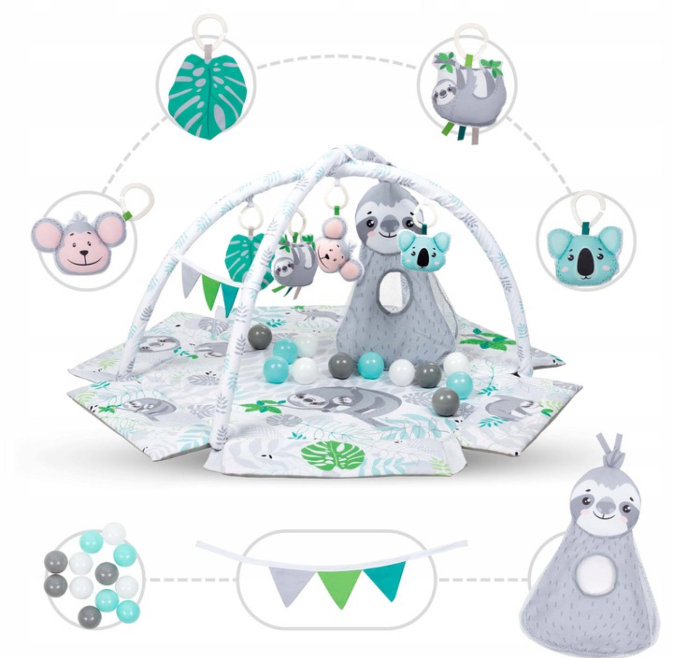 - Komplekt sisaldab: matt, mänguasjadega rõngad, 12 palli, kott, 5 mänguasja
