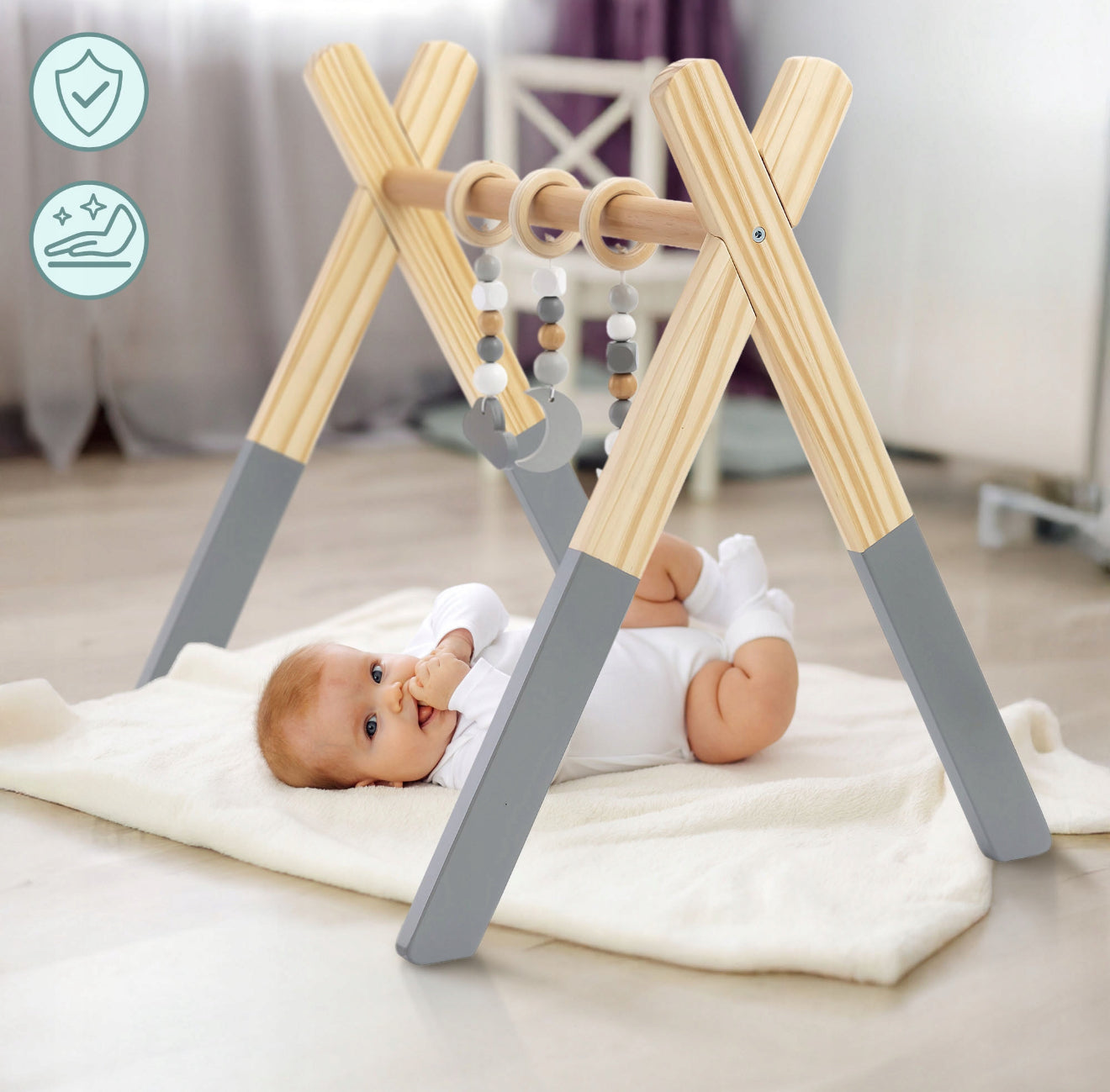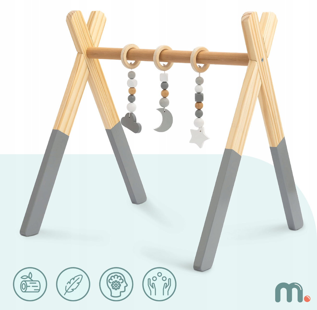 Puidust mänguala "Mamabrum Baby Gym" on teie lapsele turvaline ja hariv esmane meelelahutus. Minimalistliku disainiga, mis on inspireeritud Montessori meetodist, ei kaunista see mitte ainult teie lapse tuba, vaid soodustab ka tema loomulikku arengut.