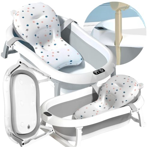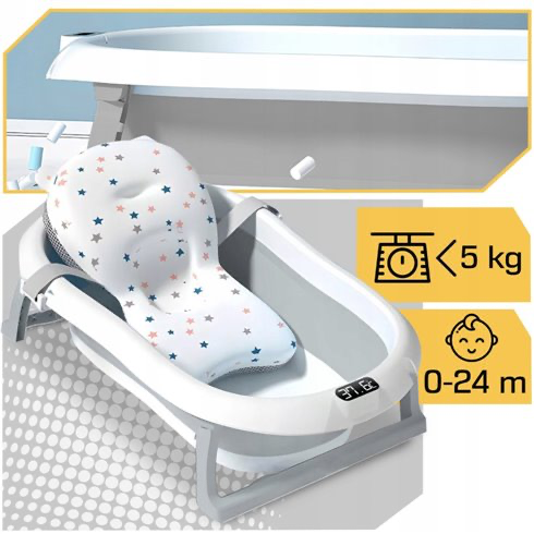 - Ohutus: integreeritud elektrooniline termomeeter võimaldab täpselt jälgida veetemperatuuri (täpsus kuni 0,1 °C) ja ergonoomiline padi tagab lapsele stabiilsuse ja mugavuse.
