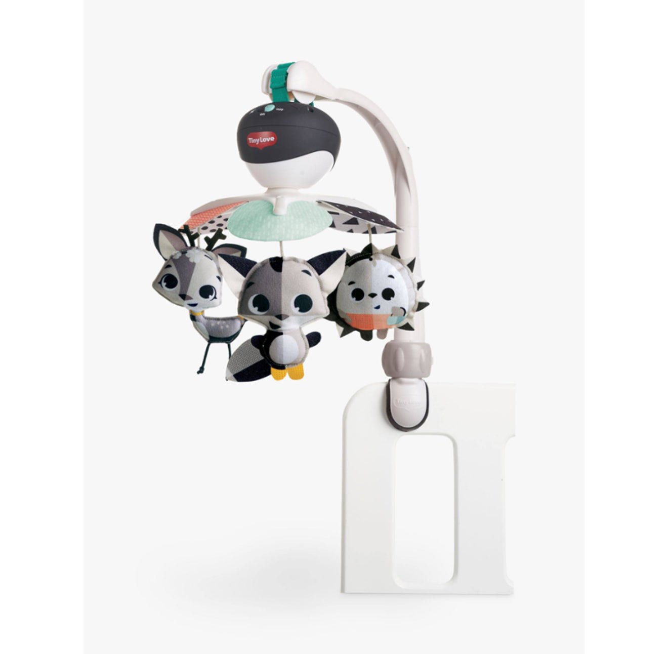 Tiny Love Magic Tales kaasaskantav mobiil on mitmekülgne, kompaktne ja stiilne mobiil, mis rahustab ja lõbustab last nii kodus kui ka liikvel olles. Mustvalged kontrastid ja armsad pehmed mänguasjad aitavad stimuleerida teie pisikese nägemist esimestest elupäevadest alates.